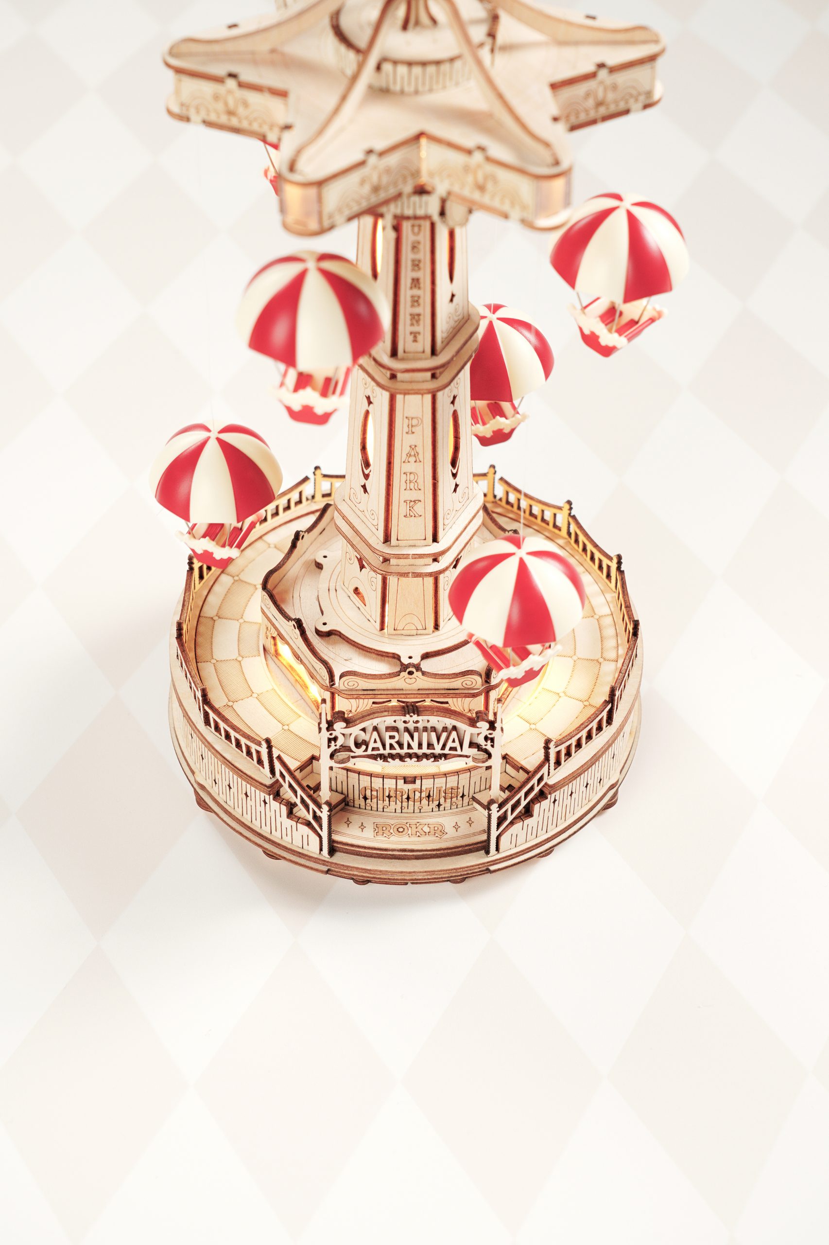 ROKR Fallschirm Musikbox – Mechanisches 3D-Holzpuzzle Vergnügungspark